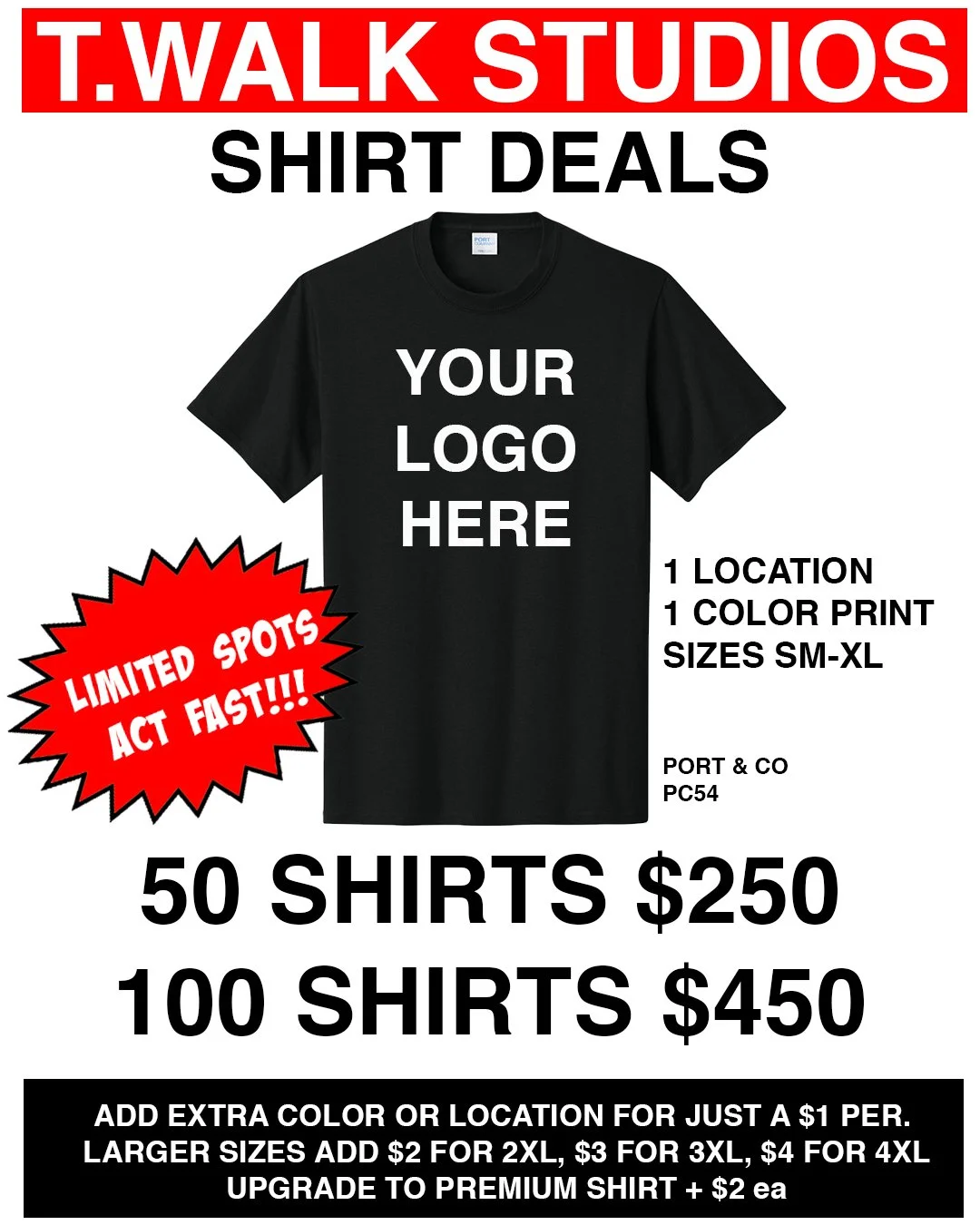 Have a business that is in need of professional looking shirts with your own custom logo on them? Need your own custom jerseys for a sports team? Maybe a special event like a race, local sports team, bachelorette parties, memorials, fan tees, and more! To learn more just.........